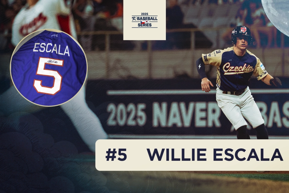 Tento originální dres oblékal český univerzál Willie Escala na exhibiční K-Baseball Series v Soulu! 🇰🇷 Odehrál v něm sérii 8. a 9. listopadu 2025 proti Jížní Koreji. 🤝