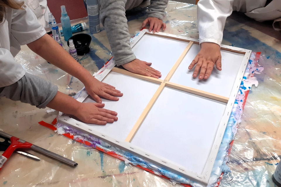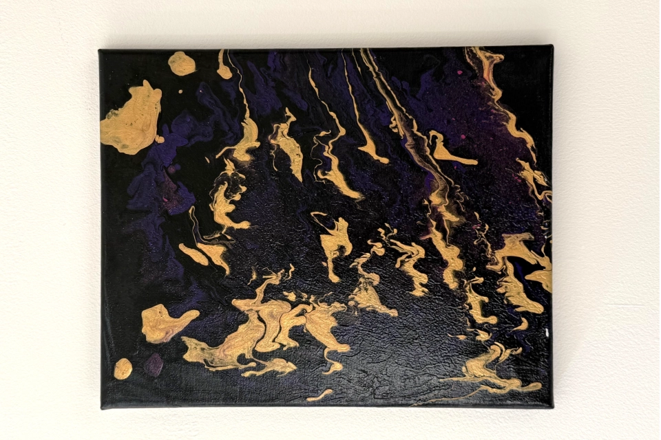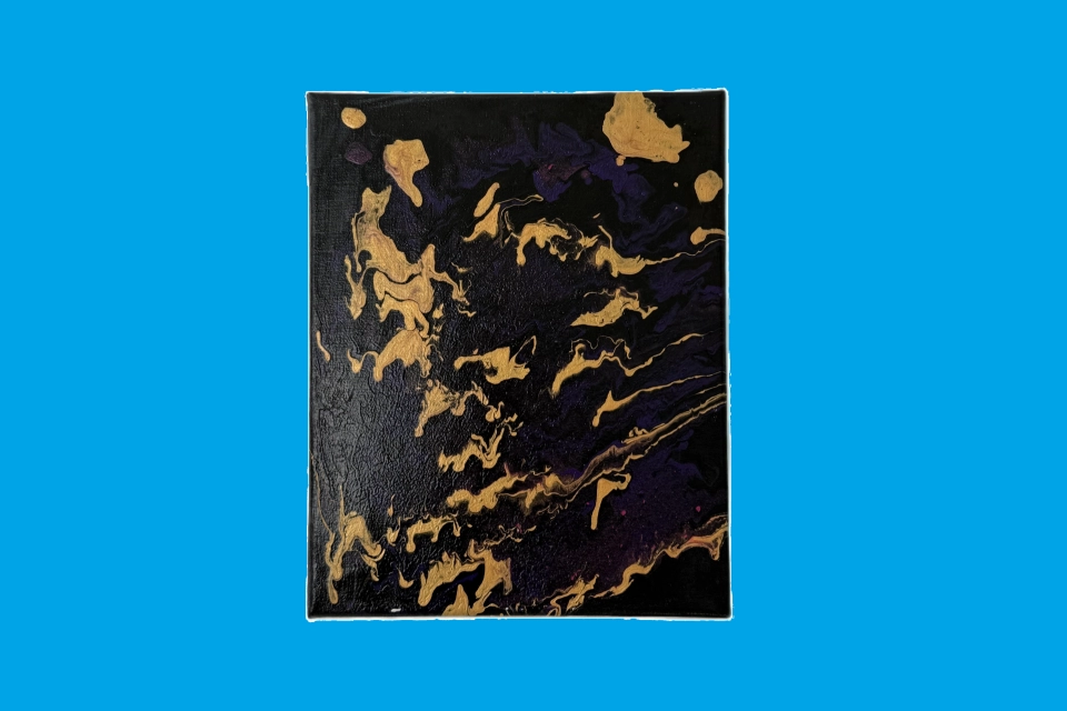 Název díla: Planeta Autor: Helena Šimůnková - klientka denního Stacionáře Človíček pro osoby s postižením Technika: Acrylic pouring na plátně Rozměry: 23,5 × 29,5 cm Příběh obrazu: Obraz vznikl při experimentování s technikou acrylic pouring, při které se akrylové barvy nechávají volně rozlévat po plátně. Barvy se postupně prolínaly, vytvářely vrstvy a nečekané struktury. V jejich tvarech a barevných přechodech se začal objevovat obraz neznámého světa – povrch planety s krátery, kontinenty i tajemnými krajinami. Právě tato představa inspirovala autorku k názvu Planeta. Dílo zachycuje moment, kdy náhoda, barvy a fantazie společně vytvoří obraz, ve kterém si každý může představit vlastní nesmírně vesmírný příběh. Výtvarná tvorba je pro klienty způsobem, jak vyjádřit fantazii, emoce i radost z objevování nových technik. Každý obraz je tak jedinečným otiskem okamžiku, kdy se barvy, náhoda a představivost spojí v jeden celek. Vydražením tohoto obrazu podpoříte lidi s postižením na jejich cestě k samostatnějšímu a důstojnému životu. Obrazy jsou součástí dobročinných aukcí konaných při Benefičním koncertu Pocta legendám, který se uskuteční 27. 3. 2026 v chrámu Mistra Jana Husi v Plzni. Na koncert si můžete vydražit VIP balíček se vstupenkami nebo si vstupenky zakoupit na portálu Plzeňská vstupenka.