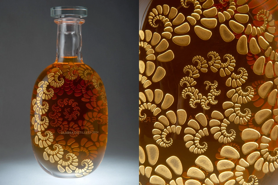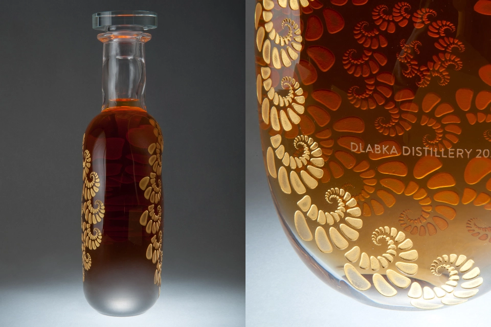 Jedna z dvanácti autorských lahví z ručně foukaného českého skla naplněná limitovanou WHISKY od české palírny Dlabka Distillery. Lahev je vyrobena dle návrhu skláře a uměleckého rytce Jaroslava Šáry ve sklárně Kolektiv Ateliers v Novém Boru. Je zdobena luxusním dekorativním vzorem, který je vytvořen kombinovanou technikou hloubkového a jemného pískování doplněného ručním zlacením. Uzavřena elegantní skleněnou zátkou Vinolok ze sklárny Preciosa a uložena v luxusní dřevěné krabičce. Obsahem lahve je Dlabka Whisky Unpeated Apricot Brandy Cask - jednosladová nenakouřená whisky z kvalitního českého ječmene, která část zrání ležela v sudu po Dlabka meruňkovici, díky čemuž dosáhl master blender Matěj Houdek krásně jemné smetanové struktury s tóny vanilky a sušeného ovoce. Součástí je záruka znovunaplnění lahve a to až dvakrát během roku 2025, pokud právoplatný majitel přijede s prázdnou lahví osobně přímo do palírny Dlabka Distillery ve Svijanském Újezdu. Patronem lahve je Martin Půta, hejtman Libereckého kraje Tuto benefiční událost považuji za dobrý nápad a nad možností se jí zúčastnit jsem neváhal. Podporuje totiž výrobce ze zdejšího regionu: podnikatele, který letos získal za jeden ze svých produktů ocenění v soutěži Výrobek roku Libereckého kraje, a skláře z novoborského Ateliéru Kolektiv, v jejichž dílnách vznikly designové lahve. Neméně důležitý je ale i její dobročinný rozměr. Výtěžek jsem se rozhodl věnovat regionální instituci – libereckému Centru LIRA, které dlouhodobě pomáhá rodinám dětí se zrakovým a kombinovaným postižením.