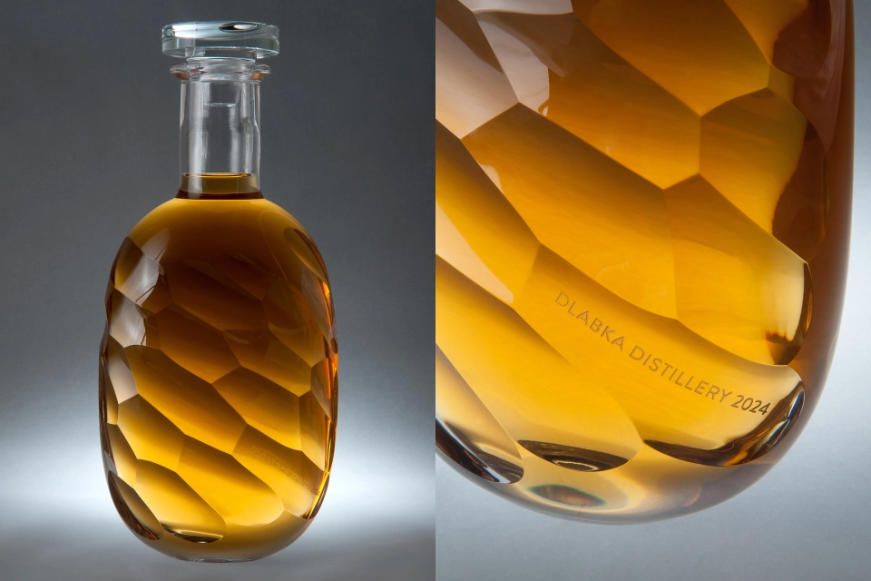 Jedna z dvanácti autorských lahví z ručně foukaného českého skla naplněná limitovanou WHISKY od české palírny Dlabka Distillery. Lahev je vyrobena dle návrhu skláře a uměleckého rytce Jaroslava Šáry ve sklárně Kolektiv Ateliers v Novém Boru. Je zdobena technikou broušených a leštěných šikmých ploch, které na čelní straně tvoří unikátní vzor. Je uzavřena elegantní skleněnou zátkou Vinolok ze sklárny Preciosa a uložena v luxusní dřevěné krabičce. Obsahem lahve je Dlabka Whisky Unpeated Apricot Brandy Cask - jednosladová nenakouřená whisky z kvalitního českého ječmene, která část zrání ležela v sudu po Dlabka meruňkovici, díky čemuž dosáhl master blender Matěj Houdek krásně jemné smetanové struktury s tóny vanilky a sušeného ovoce. Součástí je záruka znovunaplnění lahve a to až dvakrát během roku 2025, pokud právoplatný majitel přijede s prázdnou lahví osobně přímo do palírny Dlabka Distillery ve Svijanském Újezdu. Patronem lahve je ilustrátorka Eliška Podzimková Mladá česká animátorka, ilustrátorka, fotografka a všestranná umělkyně. Má na kontě např. spot pro Jamieho Olivera, obsazení titulní stránky newyorského deníku Metro, nebo dokreslené fotky pro americký Vogue. Ilustrovala knížku Arnoštova cesta Markéty Pilátové, s nakladatelstvím Albatros vydala unikátně ilustrovaného Malého prince, aktuálně vychází Malá vánoční povídka. Spoluvytvořila knižní vydání průvodce Honest Guide s Jankem Rubešem. Pro pražský magistrát připravila projekt PrahART, kde vnáší umění do dopravních prostředků, režírovala spot pro cenu Gratias Tibi pro Člověka v tísni. V současné době pracuje na seriálu Plešouni pro onkologicky nemocné děti a připravuje také novou autorskou výstavu, která spatří světlo světa již na podzim 2025.