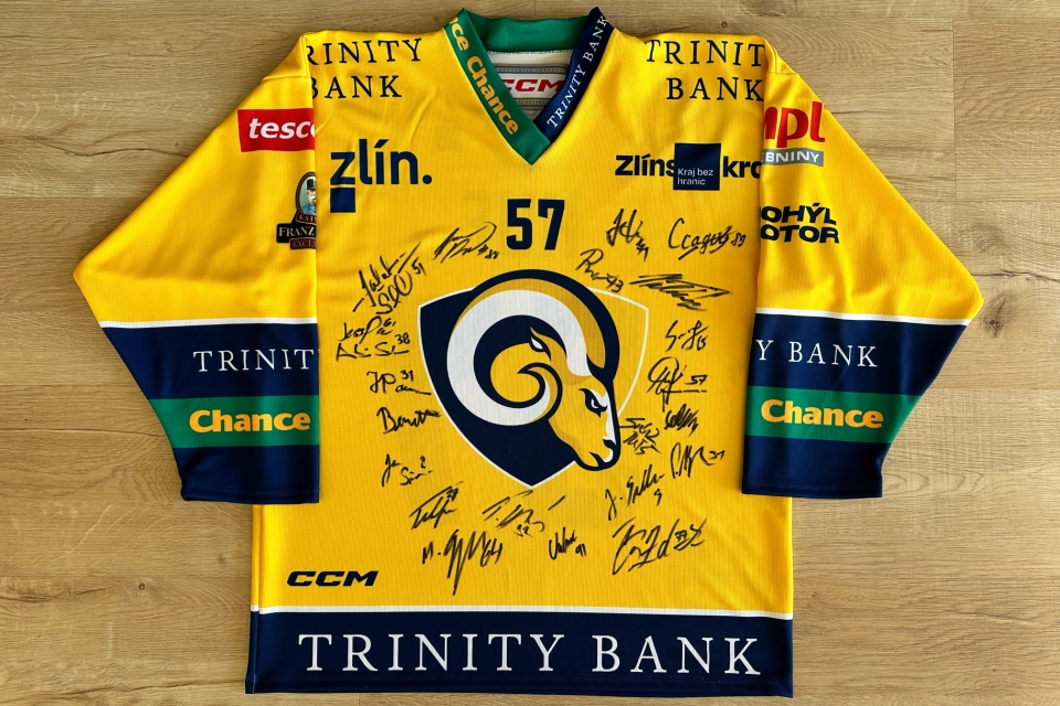 Profil organizaceOriginální fanouškovský dres hokejového klubu RI OKNA Berani Zlín s podpisy hráčů. Dres je talentovaného brankáře Daniela Hufa s jeho číslem 57.