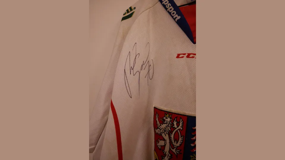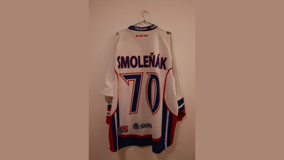 Radek Smoleňák - podepsaný dres kapitána hoklejové reprezentace z Euro Hockey Tour 2015 (dosud nepraný). Tato aukce je součástí #aukceroku, kterou pořádá Těhotnej kuchař. V ní se draží podepsané sportovní relikvie a veškerý výtěžek jde na zajištění provozu Dětského centra Milovice a Nadace Via.