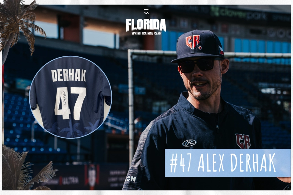 Tento originální dres oblékal český trenér Alex Derhak na jarním kempu národního týmu na Floridě! 🌴🇺🇸 Strávil v něm všechny čtyři zápasy proti týmům z MLB od 7. do 14. března.😍 Výtěžek z každé aukce putuje do Fondu potřebným na podporu výjezdu reprezentace U12 na letošní mistrovství Světa na Tchaj-wanu. 🙏🏻 Děkujeme, že pomáháte!