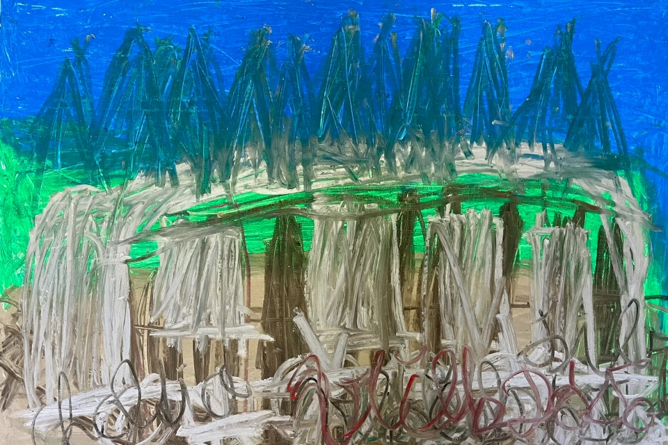 Olejový pastel na papíře A2 Dagmar Filípková (*1960) je příkladem toho, že pro tvořivou bytost neexistuje žádné omezení, žádný nepřekonatelný handicap – se stejnou samozřejmostí maluje, hraje v divadelních představeních nebo zachycuje běh svého života v deníku. Po vyzkoušení různých výtvarných technik našla svůj nejpřirozenější výraz díky olejovým pastelům, které dobře vyhovují její potřebě hutně vrstvit barevné plochy a zároveň dát rozmach každému tahu v kresbě. I když její díla připomínají spíše krajiny ze snů, volí si Dagmar Filípková za předlohu obvykle místa nebo architektury, které jsou velmi přesně určené: nachází je na pohlednicích, v kalendářích a učebnicích, na záběrech z internetu, ale pochopitelně i ve vzpomínkách na vlastní cesty. Někdy dokonce do obrazů i výrazným rukopisem zaznamenává, které místo si vybrala. Nezatěžuje se ovšem žádnou popisností, ze skutečnosti si pokaždé vybírá jen to, co považuje opravdu za podstatné. Má mimořádný cit pro barevné přechody a odstíny a každý její obraz si nese svou neopakovatelnou náladu právě díky zvláštně zvoleným barvám. Na základě deníků Dagmar Filípkové vzniklo divadelní představení, které v listopadu 2013 pod názvem „Dášo, vstávej!“ uvedlo na scénu pražské Divadlo Inventura (dnes divadlo Ujeto). Autorka byla obsazena do hlavní role. V roce 2020 svoje deníky také načetla jako podcast – audioknihu na pokračování. Kromě toho vystupuje i v několika dalších divadelních představeních divadla Ujeto. Pokud byste chtěli nabídku využít jako vánoční dárek, je možné v režimu Kup teď zakoupit dílo a vyzvednout si je v Ateliéru radostné tvorby, Nad Královskou Oborou 55, Praha 7, ještě před vánoci po telefonické dohodě na čísle 602646665, s tím, že je to možné i na Štědrý den v době 10,00-13,00.