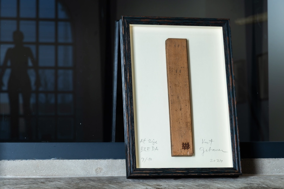 Limitované série 10 ks rámů historických parket z obchodního domu Breda podepsaných Kurtem Gebauerem.