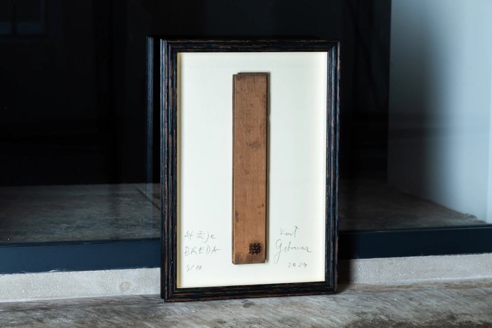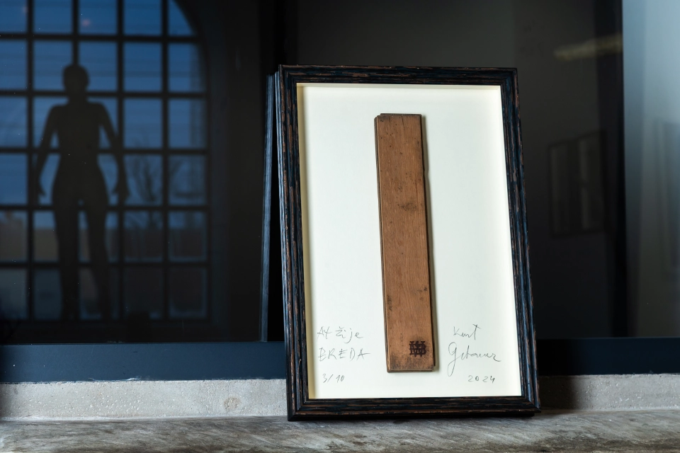 Limitované série 10 ks rámů historických parket z obchodního domu Breda podepsaných Kurtem Gebauerem.