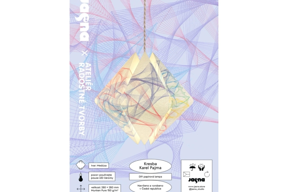 Potkali se dva umělci. ˚ Jasna se specializuje se na design interiérového osvětlení z ručně vyráběného papíru ˚ Karel Pajma je neurodiverzní umělec, který vytváří rozměrné rýsované kresby a působí v Ateliéru radostné tvorby. Oba se zabývají ˚ prostorem ˚ světlem ˚ vzduchem. Jejich tvorba se protla ve společném lampionu, který jsme pojmenovali ˚˚˚˚˚˚˚˚ Lampion radostné tvorby! Papírové stínidlo na lampu s designem Karla Pajmy z dílny designérky Jasna je k dostaní u nás na Letné a to ve dvou cenových variantách: 780,- (poskládáš si sám) 980,- (poskládané, jen pověsit) Pokud byste chtěli nabídku využít jako vánoční dárek, je možné v režimu Kup teď zakoupit dílo a vyzvednout si je v Ateliéru radostné tvorby, Nad Královskou Oborou 55, Praha 7, ještě před vánoci po telefonické dohodě na čísle 602646665, s tím, že je to možné i na Štědrý den v době 10,00-13,00.