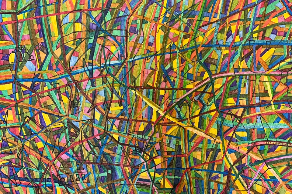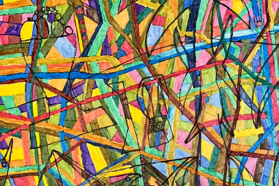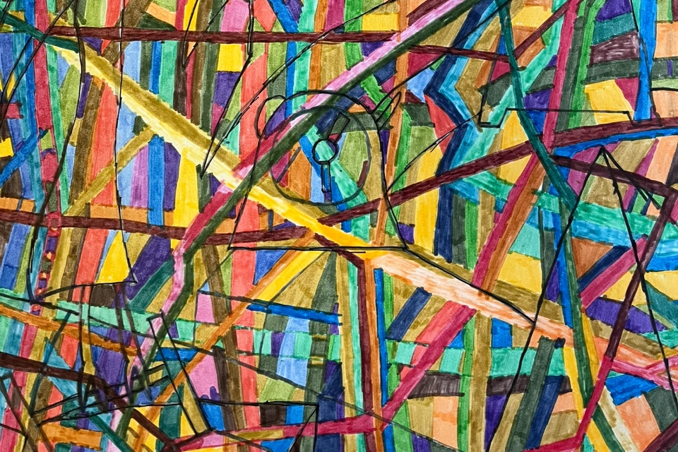 Fix na papíře A1 Ladislav Svoboda (*1986) ukazuje, jak obraz, který působí velmi překvapivě už na první pohled, může na druhý pohled přinést ještě další, mnohem nečekanější překvapení. Když se totiž neztratíme v mozaikovitě pestrých strukturách, začneme pozvolna rozpoznávat postavy, které dosud skoro dokonale splývaly s okolním prostředím, jako by používaly „mimikry“, ochranné zbarvení. Malování se stalo pro Ladislava Svobodu jedním z hlavních způsobů, jak překonávat vážné zábrany při komunikaci s okolním světem. Navzdory Aspergerovu syndromu dokázal úspěšně zvládnout magisterské studium na vysoké škole, věnuje se psaní sci-fi příběhů, ale nejvýmluvnější zprávou o tom, co prožívá, jsou nakonec asi jeho obrazy. Mají nezaměnitelný styl, jsou barevně těkavé, tříštivé, zdánlivě nepřehledné, ale zároveň velmi promyšlené a pečlivě provedené do nejmenšího detailu. Nápadná je i potřeba zaplnit až pokraj úplně celý prostor, známá v dějinách umění jako „horror vacui“ – obava z prázdna. Mezi postavami, které Svoboda zobrazuje, se dají často rozpoznat hrdinové dnešní popkultury, například z komiksů, počítačových her nebo sci-fi filmů. Zároveň ale maluje i postavy ze svých vlastních textů, například z velkého cyklu První obrana. Nechybí ani obrazy oblíbených domácích zvířat, portréty členů rodiny nebo blízkých přátel. Původně kreslil inkoustovými fixy na papír, ale v posledních letech používá akrylové fixy a malířské plátno. Každému ze svých obrazů věnuje mnoho času, obvykle řadu týdnů, ale někdy i měsíců. Pokud byste chtěli nabídku využít jako vánoční dárek, je možné v režimu Kup teď zakoupit dílo a vyzvednout si je v Ateliéru radostné tvorby, Nad Královskou Oborou 55, Praha 7, ještě před vánoci po telefonické dohodě na čísle 602646665, s tím, že je to možné i na Štědrý den v době 10,00-13,00.