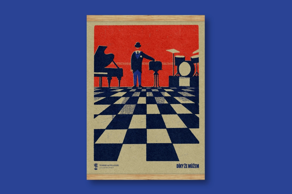 Fine art tisk 50x70 cm Na motivy písně Pramínek vlasů Tomski & Polanski pro knihu Písničkou ke svobodě Připojte se k jedinečné aukci ilustrací z nové knihy Písničkou ke svobodě od spolku Díky, že můžem, která vzniká k příležitosti 35. výročí sametové revoluce. Tento naučný zpěvník a jeho ilustrace představují hudbu v kontextu doby, kdy nebylo každému do zpěvu. Připojením se do aukce přispějete na podporu organizace Díky, že můžem a rozvoj našich aktivit na podporu svobody a demokracie. Aktivity spolku najdete na stránkách www.dikyzemuzem.cz. Výběr tvoří symbolicky sedmnáct písní, které udávaly tón své doby napříč žánrovým i ideovým spektrem. Jde o letmý průřez hudební tvrobou od šedesátých let po sametovou revoluci zabalený v příběhu, jak se šlo s písničkou ke svobodě. Písnička Pramínek vlasů od Jiřího Suchého, který je do morku kostí spojený s fenoménem divadla Semafor. Co se stane, když se zbraně promění v hudební nástroje? V muzikálu Kdyby tisíc klarinetů se v kasárnách místo střílení zpívaly písničky. Přijďte si prohlédnout dražené ilustrace do Kavárny Mlýnská na Kampě do 7. 10. 2024.