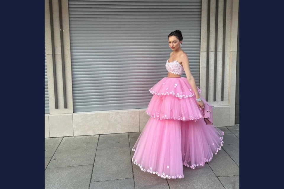 Výrazná, hravá, nezaměnitelná – přesně taková je róba, kterou do aukce věnovala Vanda Janda, módní návrhářka známá svým osobitým glam stylem a odvahou tvořit pro ženy, které chtějí být vidět. Set tvoří vícevrstvá tylová sukně zdobená aplikacemi drobných kvítků a korzetový top z hedvábí, ručně vyšívaný bavlněnou krajkou a doplněný o hedvábnou podšívku. Na samotné výšivce se pracovalo čtyři a půl měsíce – každý detail je poctou řemeslu a lásce k ženské kráse. Výrazná růžová, květinové aplikace a retro silueta vytvářejí model, který je odvážný a něžný zároveň. Tento výjimečný kousek vznikl jako pocta radosti, ženskosti a autentickému stylu – a nyní může pomáhat dál. Výtěžek z aukce podpoří organizaci Debra ČR, která pomáhá lidem s nemocí „motýlích křídel“. Přihazujte do 9. července – a staňte se součástí pomoci, která má styl. Pokud si přejete, aby šaty pomáhaly i nadále, můžete je po vydražení věnovat do showroomu The Dress Prague, kde se budou dál pronajímat – a výtěžek z každého zapůjčení poputuje na transparentní účet organizace Debra ČR.