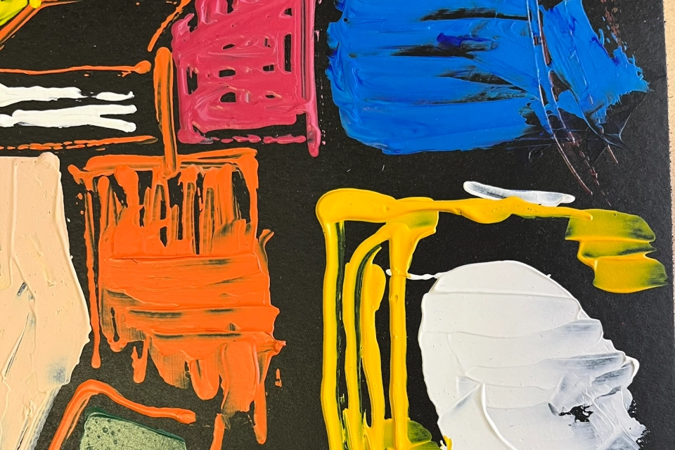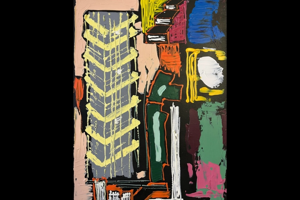 Akryl na papíře A3 Od prvního obrazu, který začátkem roku 2022 namaloval akrylem na plátno v Ateliéru radostné tvorby, se Proske drží tématu městské civilizace a její nepřehlednosti. Ve výtvarných zkratkách, které často přecházejí do čistě abstraktních kompozic z obdélníků, skvrn a klikatých čar, naznačuje křižovatky ulic, rytmy domů, hrany oken. Proske je suverénním malířem, ale když přišel poprvé do letenského ateliéru, měl jen bezpočet barevných skic uložených v mobilu. Kreslil si prstem po displeji pomocí výtvarných aplikací, a to byla jediná jeho díla. Rok předtím se přestěhoval do Prahy z Jeseníku, pohraničního maloměsta, kde už cítil jen ustrnulost bez vyhlídek na změnu. Od dětství se musel vyrovnávat s pocitem, že nezapadá mezi ostatní a nerozumí jim, a dnes už ví, že jeho odlišnost způsobil Aspergerův syndrom. Že by se mohl věnovat malování, to Vojtěcha po skončení školní docházky zřejmě ani nenapadlo. K barvám se asi nejblíž dostal, když se nějaký čas pohyboval v prostředí pouliční malby graffiti. Přesto už po půl roce tvorby zvládl první samostatnou výstavu „Pod vlivem mnoha faktorů“ v pražské galerii Velryba (2022), v dalším roce následovala výstava v galerii Art brut Praha a rozsáhlý profil v časopisech Revolver Revue. Pokud byste chtěli nabídku využít jako vánoční dárek, je možné v režimu Kup teď zakoupit dílo a vyzvednout si je v Ateliéru radostné tvorby, Nad Královskou Oborou 55, Praha 7, ještě před vánoci po telefonické dohodě na čísle 602646665, s tím, že je to možné i na Štědrý den v době 10,00-13,00.