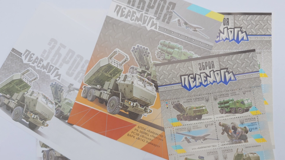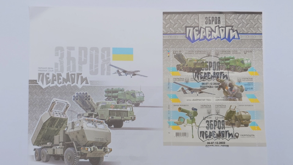 Ukrajinský institut v Praze podporuje ukrajinské dobrovolníky a my jsme tuto akci věnovali na podporu neziskové organizace "Flash of life". Jedná se o tým progresivních inženýrů, kteří jsou nadšeni světem 3D tisku a vývojem odminovacích dronů. Jejich cílem je využívat inovace k podpoře důležitých cílů. "Ukrposhta" vydala tuto sadu známek - "Zbraně vítězství" - na podporu ozbrojeným silám Ukrajiny za jejich odolnost, sílu a odvahu. Tuto sérii dáváme do aukci Dobrobot, abychom podpořili ukrajinské dobrovolníky z této neziskové organizace. Tato položka je sada, která se skládá z velké obálky se známkami a originálním razítkem, malé obálky, pohlednice a známkového aršíku "Zbraně vítězství", na kterém je vyobrazeno 6 poštovních známek s ukázkami vojenských ukrajinských a zahraničních zbraní: "Vilcha", "Neptun", "Stugna-P", "Bayraktar TB2", FGM-149 "Javelin", "M142 Hybrids".