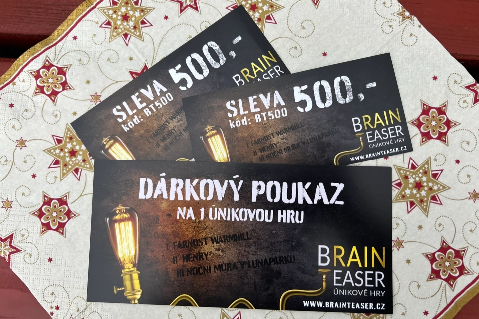 2x Poukaz na únikovou hru zdarma + 2x sleva 500 kč – BrainTeaser Brno Nabízíme dva poukazy na skvělé únikové hry BrainTeaser v Brně. Každá hra přináší napínavý příběh, originální hádanky a propracovanou atmosféru, která vás vtáhne od první minuty! Poukazy lze využít na jakoukoliv z těchto her: Farnost Warmhill: Mrazivá záhada z temného sklepení staré farnosti. Podivná smrt mladé spisovatelky Mary skrývá nevyřešené tajemství – dokážete uniknout dřív, než děsivá atmosféra zcela pohltí vaši mysl? Henry: Záhadná pozvánka na poslední rozloučení s Henrym, o kterém jste nikdy neslyšeli... Zdánlivě obyčejný pohřeb se rychle promění v napínavé dobrodružství, plné nečekaných zvratů a tajemství, která čekají na odhalení. Noční můra v lunaparku: Junior tě čeká každou noc ve tvém snu. Tentokrát tě ale z jeho lunaparku možná nenechá tak snadno odejít! Děsivě zábavná atmosféra plná překvapení, hádanek a strašidelného napětí. Způsob doručení a Osobní odběr Osobní odběr (ZDARMA): Osobní odběr zakoupených předmětů bude možný 3. 12. 2025 v čase 10:00–16:00 v rámci akce Dobrotrh MENDELU na Mendelově univerzitě (před budovou Q). Prosíme, dodržte uvedený čas pro vyzvednutí. Doručení Zásilkovnou (Zpoplatněno): V případě doručení prostřednictvím Zásilkovny je cena zaslání od 89 Kč na doručení na výdejní místo a od 129 Kč na doručení na adresu. Komu v aukci a na Dobrotrhu 2025 pomůžeme Vaše štědrost a podpora v rámci Dobrotrhu MENDELU 2025 putuje k následujícím potřebným organizacím a jednotlivcům: Podpora organizací Slezská diakonie Brno: Organizace poskytující sociální a zdravotní služby pro lidi v náročných životních situacích. Autistická škola Brno: Specializované vzdělávací zařízení, které zajišťuje péči a rozvoj dětí a mladistvých s poruchou autistického spektra. Dětské centrum Chovánek: Poskytuje komplexní péči a domov dětem, které nemohou vyrůstat ve své biologické rodině. Naděje pro ježky: Organizace pečující o zraněné, opuštěné a týrané ježky s cílem vrátit je zpět do volné přírody. Podpora jednotlivců Amélie Mihálková: Příspěvek bude použit na úhradu výdajů spojených s její náročnou a dlouhodobou léčbou. David Stojkovič: Příspěvek bude určen na úhradu výdajů spojených s nezbytnou péčí a rehabilitací. O spolku Séva, z.s. Spolek Séva, z.s. je klíčovým spoluorganizátorem Dobrotrhu MENDELU. Jeho hlavním cílem je podpora zdravotně a sociálně znevýhodněných osob, neziskových organizací a společensky prospěšných projektů.