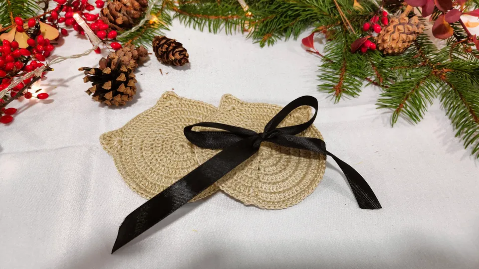 Dva ručně háčkované podtácky s kočičí tematikou vyrobené studentkou z Mendelovy univerzity. ❤️❄️Jsme studenti Mendelovy univerzity v Brně a v rámci Dobrotrhu, (což je dobročinná akce pořádána námi studenty), jsme se rozhodli podpořit neziskovou organizaci - Depozitum Flíček, která zachraňuje nemocné a hendikepované kočičky. Bohužel teď mají pozastavený příjem, kvůli nedostatku financí, tudíž nemůžou přijímat další kočičky, které tuto pomoc opravdu moc potřebují. Výtěžek z aukce pomůže k tomu, aby mohli pokračovat v jejich poslání. Když koupíte předmět z této aukce, podpoříte těchto 150 kočiček.❤️❄️