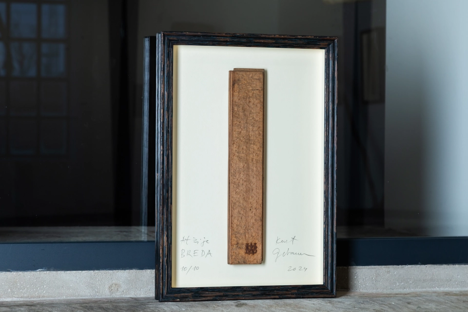 Limitované série 10 ks rámů historických parket z obchodního domu Breda podepsaných Kurtem Gebauerem.