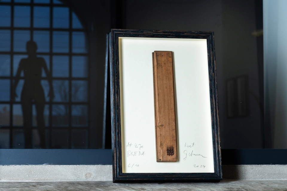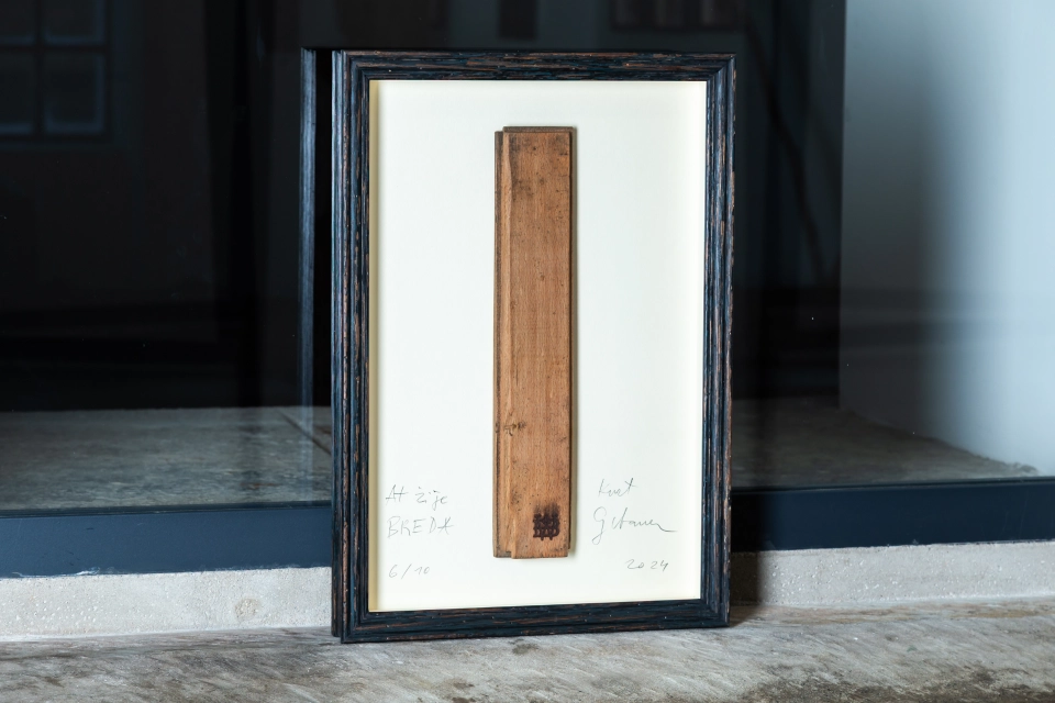 Limitované série 10 ks rámů historických parket z obchodního domu Breda podepsaných Kurtem Gebauerem.