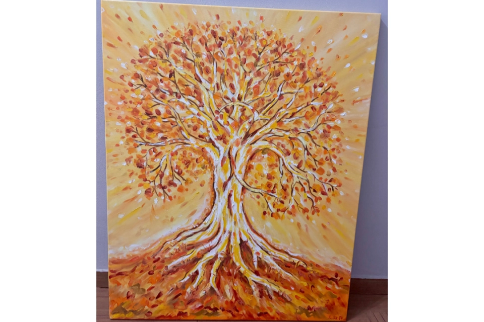 Obraz Ivo Ševčíka z Hukvald, 80 x 100 cm Výtěžek poputuje na podporu dětí se zrakovým postižením v Moravskoslezském kraji a jejich rodin. Předání možno osobně na Benefičním láskyplném podvečeru 6. 2. 2026 v Hukvaldském dvoře, případně dle domluvy v MS kraji. Případně je možné se domluvit i na odeslání zásilkovou službou.