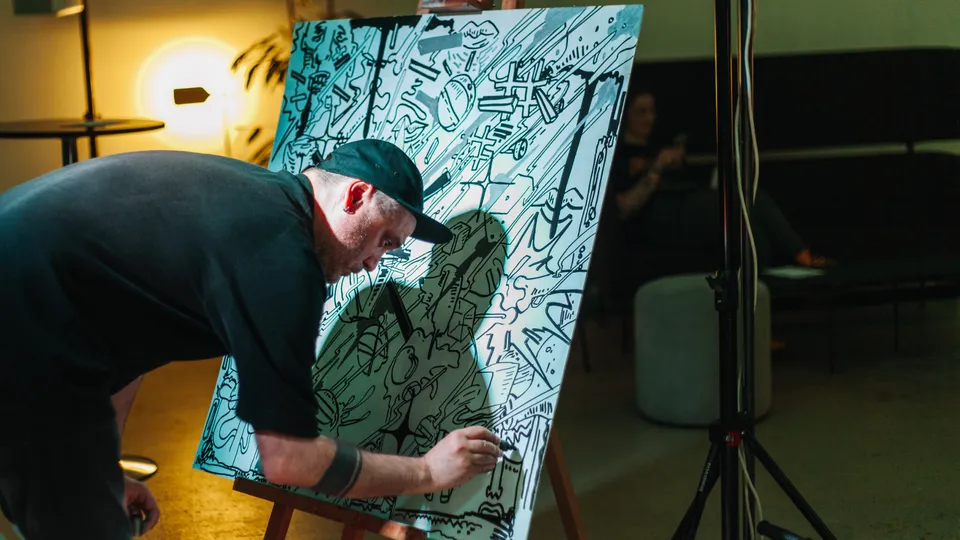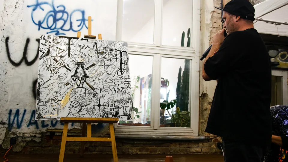 Live art performance, díky které vznikla originální malba z témat publika v rámci červnového setkání grafických designérů SCUK v Brně. Akryl na sololitové desce, rozměry 100x100 cm. Autorem je Stanislav Apoka Bílek, známý brněnský ilustrátor, streetartový umělec a kreativní ředitel. Jeho muraly a ilustrace zdobí firmy jako Google, Notino nebo vstupuje do veřejného prostoru, nedávno jako součást malby na pomník na Bílé Hoře v Brně apod. Stanislav „Apoka“ Bílek je designér a ilustrátor. „Když jsem se stal v roce 1995 součástí prvních kroků Brněnské graffiti scény, netušil jsem, jaký příběh tím začne. Od těchto kroků, které mne osobně přivedly k typografii, přes působení v dnes už legendární kapele Naše Věc, po působení na prvním Slam poetry, to vše mne určitým způsobem zformovalo a zavanulo k cestě grafického designu, ilustrace a malby. Snažím se zachovávat nadhled, miluju čerstvou energii a snažím se vyhnout zaběhlým a jistým uličkám. Od nezávislých projektů po streetartovou tvorbu, snažím se neustále hledat nové pohledy a cesty.“