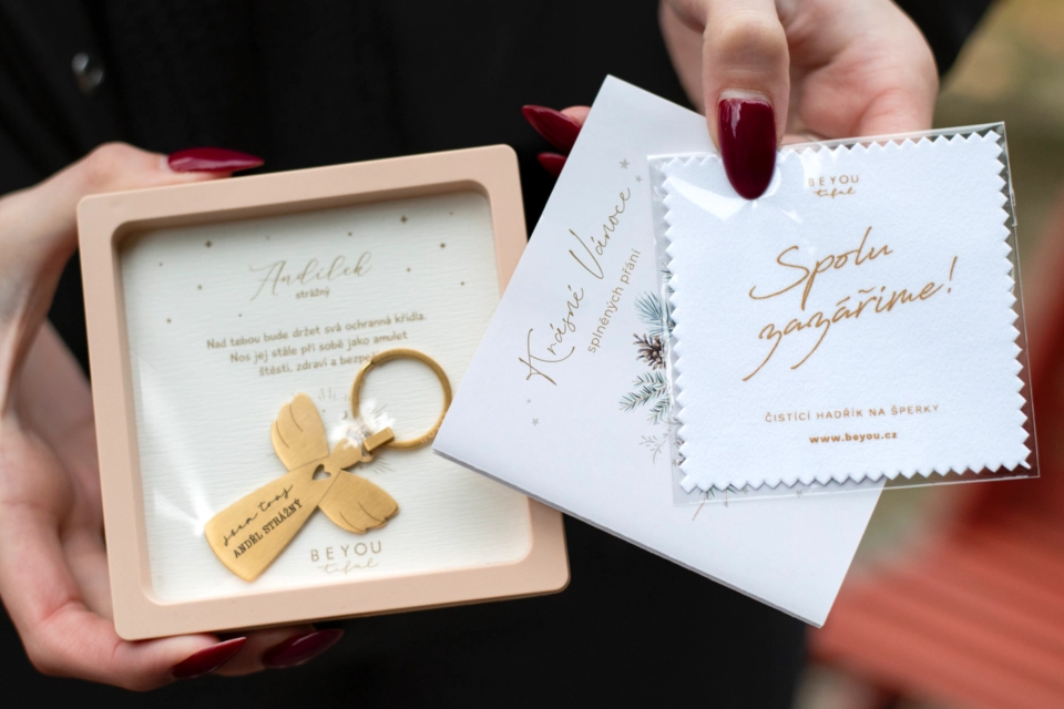 Obdarujte svoji oblíbenou osobu touto luxusní klíčenkou pro štěstí, zdraví a ochranu. 👼🪽 Materiál: pozlacená chirurgická ocel 18k zlatem Barva kovu: matná zlatá Rozměr anděla: 4,6x3,8cm Průměr kroužku: 2,5cm Součástí je čistící hadřík na šperky Doprava: - možnost osobního předání 4.12. na Dobrotrhu od 10 do 16 hodin před budovou Q Mendelovy univerzity v Brně - přes zásilkovnu (poštovné 50 až 140 Kč) Jsme studenti Mendelovy univerzity a představujeme vám aukci, jejímž cílem je podpořit ty, kteří to nejvíce potřebují. Tento rok bychom rádi pomohli: - Melisce, dvouleté holčičce, která bojuje s neurologickými problémy - Pětileté Ariance, která se potýká s vážnými genetickými poruchami - Útulku Čtyřlístek pro hafany snažící se obnovit svůj domov pro opuštěné psy po ničivých povodních Výtěžek z Dobrotrhu půjde rovným dílem pro tyto podporované subjekty. Více informací naleznete na facebookových stránkách Dobrotrhu: https://www.facebook.com/dobrotrhmendelu/?locale=cs_CZ