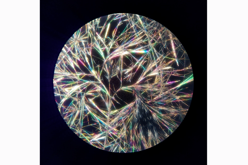 Tak takhle vypadá kofein! Něco, co někteří z nás mají každé ráno ve svém hrnku. Foceno mobilem přes školní optický mikroskop s polarizačním filtrem. Vždycky jsme obdivovali nádherné fotky profesionálních fotografů, kteří pomocí pro nás nedostupného fotoaparátu s polarizačním mikroskopem vstupují do neuvěřitelného světa barevných krystalů. A pak jsme na festivalu Science on Stage v Praze zjistili, že k focení téhle nádhery stačí jen mobil, obyčejný školní mikroskop a dva polarizační filtry. A už nás nic nemohlo zastavit. Míchali jsme chemikálie s vodou i lihem, na podložním sklíčku je sušili a na vzniklé krystaly jsme se vrhali s mikroskopem a polarizačním filtrem. Odměnou nám byly úžasné obrazy jako z jiných světů. Největší dobrodružství celého krystalového projektu spočívalo v tom, že jsme nikdy dopředu nevěděli, co se pod mikroskopem objeví a jestli vůbec něco. Formát: 25 x 25 cm Vydraženou fotografii vám necháme profesionálně vytisknout. Na dalších podrobnostech, včetně možnosti zarámování, se s vámi domluvíme po uzavření aukce. Vydraženou fotografii pak obdržíte nejpozději do konce ledna 2025. Tato fotografie je součástí kolekce "Když se umění potká s fyzikou". Fotografie zmrzlých bublin, barevných krystalů, optických iluzí, chaotického pohybu dvojkyvadla a nebo malování světlem do tmy, to je jen výběr toho, co vzniká během hodin fyziky a školních projektů. Fotografie v této dražbě pocházejí z tvorby studentek a studentů Církevního gymnázia Plzeň. Učitelé této školy, i díky zapojení do Elixíru do škol, prosazují ve své práci přístup “fyzika hlavou a rukama”. Elixír je tu pro pedagogy od roku 2013 a to, že se rozšiřuje do všech koutů ČR, potvrzuje, že vzájemné sdílení zkušeností a radosti z pokusování, které v regionech nabízí, funguje. Mnozí z učitelů, kteří k nám patří, jsou s námi už od zrodu a mají na kontě neuvěřitelných 120 absolvovaných setkání - dobrovolně a ve svém volném čase. Výtěžek z aukce zůstane u nás v Elixíru a umožní, aby se do sítě mohli přidat další učitelé a učitelky. Každé dítě si zaslouží pedagoga se spoustou nápadů, který ho dokáže nadšeně provázet pestrou krajinou přírodních věd.