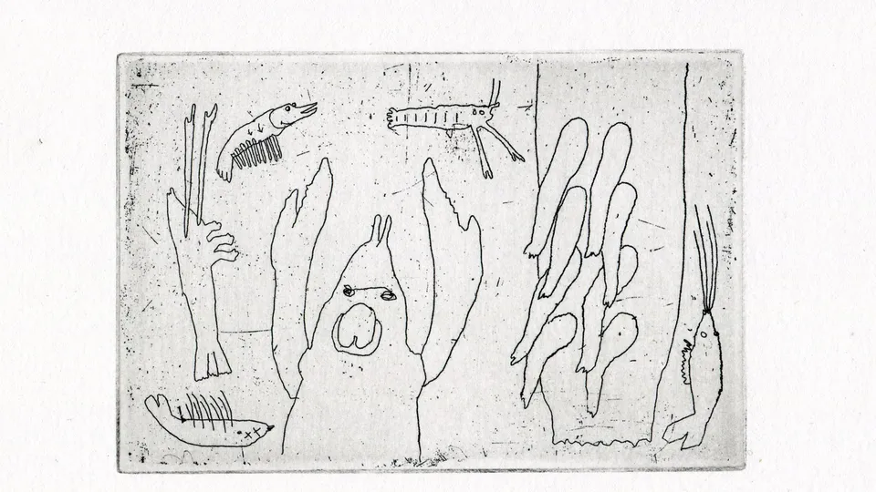 V této aukci na tebe čeká obraz s názvem Krevetky. Jedná se o skupinku krevetek v napjatém očekávání krmě. Obraz je z roku 2019 a techniku lept. Jako lept se označuje grafická technika, při níž se pomocí silné kyseliny porušuje povrch kovové desky, jejímž prostřednictvím se potom přenáší obraz na tiskovou stránku. Rozměr: 12x8 cm. Více o autorovi se dozvíš zde: https://www.brickgallery.cz/vojtech-hrubant.