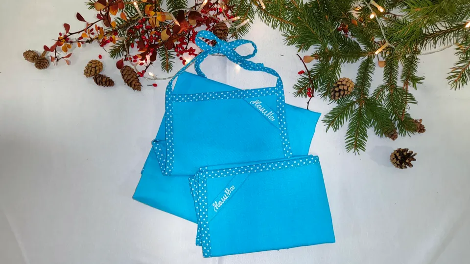 Krásný, modrý kuchyňský set od Hannesy. Kuchyňská zástěra, rukavice a utěrka s originálním poutkem. Vyrobené s láskou. ❤️❄️Jsme studenti Mendelovy univerzity v Brně a v rámci Dobrotrhu, (což je dobročinná akce pořádána námi studenty), jsme se rozhodli podpořit neziskovou organizaci - Depozitum Flíček, která zachraňuje nemocné a hendikepované kočičky. Bohužel teď mají pozastavený příjem, kvůli nedostatku financí, tudíž nemůžou přijímat další kočičky, které tuto pomoc opravdu moc potřebují. Výtěžek z aukce pomůže k tomu, aby mohli pokračovat v jejich poslání. Když koupíte předmět z této aukce, podpoříte těchto 150 kočiček.❄️