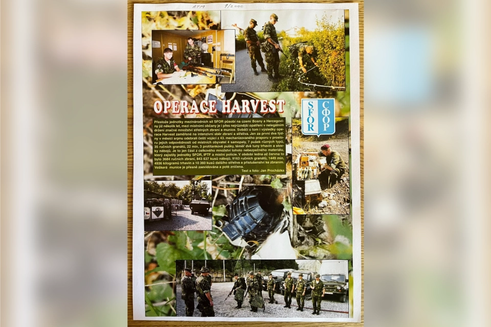 Unikátní dárková sada vzniklá z cesty po stopách mise SFOR v Bosně a Hercegovině. Na jaře roku 2024 se jeden z válečných veteránů vydal zpět do Bosny a Hercegoviny – do míst, kde v roce 2000 působil na své první zahraniční misi SFOR. Cesta byla symbolickým zakončením více než čtvrt století vojenské služby a návratem na místa, kde se začalo psát jeho působení v zahraničí. Své putování pravidelně sdílel na facebookovém profilu „Cesta veterána z města, aneb po stopách 43.vmpr v misi SFOR – 2000“ Facebook — tam najdete fotografie, příběhy a srovnání tehdejších a současných míst. Z této cesty přivezl nejen vzpomínky, ale i něco hmatatelného. Na trzích zakoupil u místních sadařů láhve pálenky, které doma proměnil ve dvě jedinečné dárkové sady. Každá obsahuje láhev pálenky (Jabučko nebo Kruška), původní mapu oblasti fasovanou v roce 2000 a originální nášivku SFOR. Láhve jsou pečlivě zašpuntované, zalité včelím voskem a překryté látkou ze vz. 95 – maskovací košile, která byla tehdy součástí výstroje. Tyto předměty nejsou jen suvenýrem – jsou autentickou připomínkou mise, vojenské služby a bratrství válečných veteránů. Obsahuje: • láhev jablkovice „Jabučko“ od místních sadařů, • původní mapu oblasti z roku 2000, fasovanou během mise, • originální nášivku SFOR. Každý detail má svůj příběh – od mapy používané v terénu až po látku z maskovací košile vz. 95. Tato sada není jen láhev pálenky, ale připomínka mise a vojenské historie válečných veteránů. Výtěžek aukce bude věnován Vojenskému fondu solidarity, který pomáhá vojákům, válečným veteránům a jejich rodinám v těžkých životních situacích.