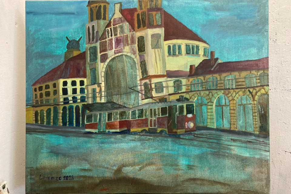 Celý název: Tramvaj "ponorka" s vlakem "krasin" u pražského hlavního nádraží Olej na plátně 80 x 100 cm 2021 Dominik Šipr, který používá pseudonym Lorenzo, není mezi autory tzv. outsider artu rozhodně sám, koho neodolatelně upoutal svět tramvají a vlaků. Představují pro něj řád, kterému dobře rozumí a který pro svůj život potřebuje. Zná podrobně jejich historii, umí je přesně pojmenovávat, pamatuje si jejich trasy. S podobně pevným řádem ale spojuje i svoje malování, tuby olejových barev mívá přesně vyrovnané a tvoří s velkou obezřetností, dokonce až něžností. Svoje tramvajové soupravy zachycuje jako něco živoucího, co ne jenom někudy projíždí, ale důvěrně propojuje se s krajinou, oblohou, lidskými příbytky. Je to svět, ve kterém se neokázale projevuje i autorova hluboká náboženská víra, chránící svět před chaosem a odcizeností. Lorenza můžete sledovat na instagramu: https://www.instagram.com/artistlorenzo/