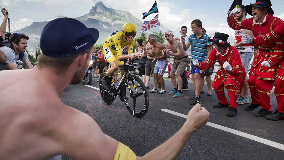 Tour de France 2016, 18.etapa: SALLANCHES - MEGEVE. Budoucího vítěze Tour de France Chrise Frooma bouřlivě povzbuzují angličtí fandové v závěrečné horské časovce na 17 km. PELOTONIE, The best of Cycling Photography – to je charitativní výstava více než 50 cyklistických fotografií, jejíž součástí je i zde dražená fotografie. Výstava se koná u příležitosti největšího tuzemského silničního etapového závodu Czech Tour, kterého je Sazka, jako velký podporovatel českého sportu, generálním partnerem. Fotografie Markéty Navrátilové z 25 ročníků Tour de France doplňují snímky oficiální fotografky českých olympioniků Barbory Reichové a Jana Brychty. Tímto Vás srdečně zveme do sídla společnosti Sazka (Evropská 866/65, Praha 6), kde jsou kromě této fotografie vystaveny i další.