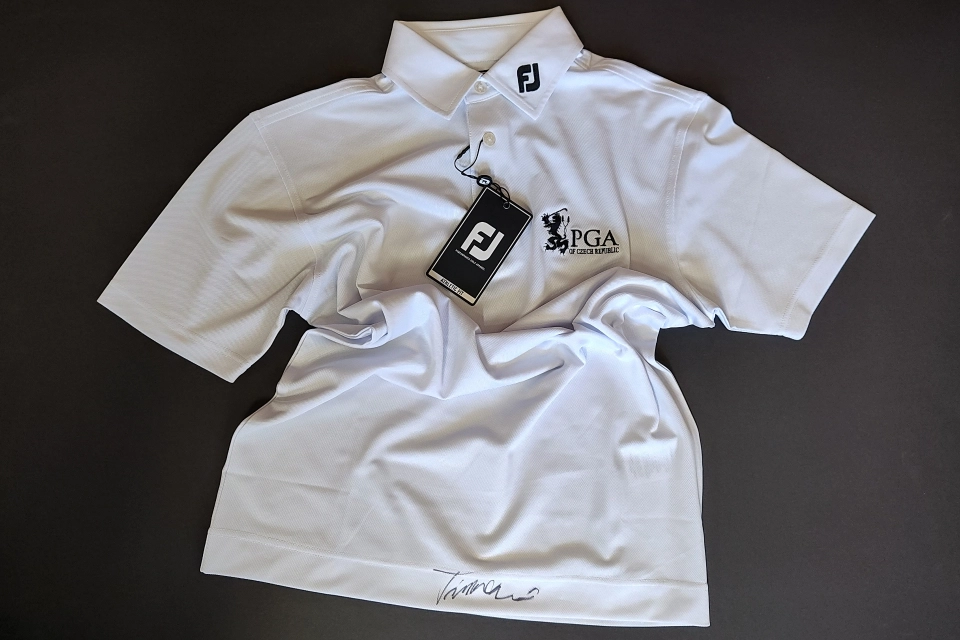 Značka FootJoy patří ke špičce na trhu s golfovým oblečením. Na hodnotě tomuto zbrusu novému tričku velikosti „S“ přidává vlastnoruční podpis „prvního muže“ českého golfu – Lukáše Tintěry, generálního sekretáře Profesionální golfové asociace hráčů a učitelů golfu ČR – který tričko daroval.