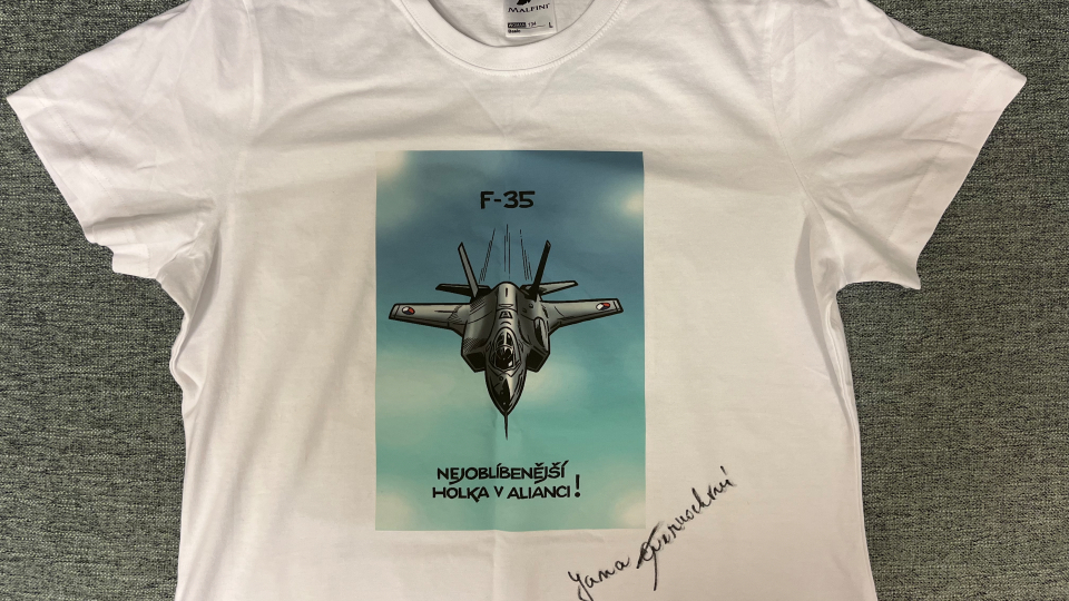 "Pochopila jsem - slovy klasika, že nejoblíbenější holku v Alianci by chtěl mít doma téměř každý", uvedla ministryně obrany Jana Černochová v den, kdy oblékla triko se stíhačkou F-35 do Sněmovny. Charitativní triko s ilustrací Štěpána Mareše se tak od toho dne prodává na webu Dárek pro Putina. První, originální a podepsaný, kousek věnovala paní ministryně do této charitativní aukce, jejíž výtěžek podpoří stejnou věc, tedy fungování Nadačního fondu pro Ukrajinu. Přihazujte a získejte tento jediný a jedinečný kousek. Protože F-35 je nejoblíbenější holka v Alianci!