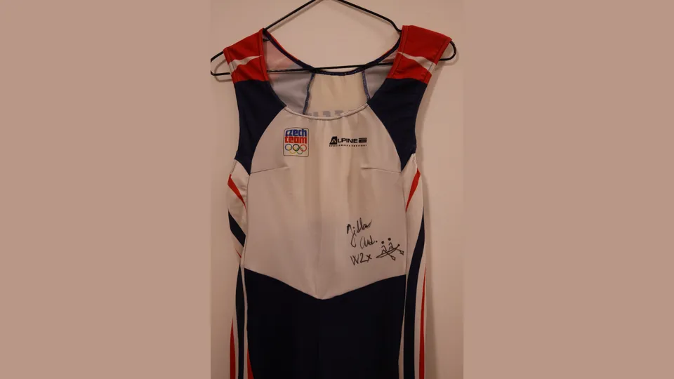 Jitka Antošová - dres z Olympiády v Pekingu 2008 dvojskif. Mistryně Evropy a dvojnásobná juniorská mistryně světa. Tato aukce je součástí #aukceroku, kterou pořádá Těhotnej kuchař. V ní se draží podepsané sportovní relikvie a veškerý výtěžek jde na zajištění provozu Dětského centra Milovice a Nadace Via.