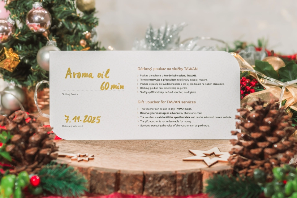 Luxusní dárkový poukaz na 60minutovou aroma olejovou masáž v TAWAN Spa. Tento zážitek poskytne dokonalý relax a uvolnění. Skvělý dárek pro každého, kdo si zaslouží chvíli odpočinku. Platnost do 7.11.2025. Poukaz lze uplatnit v kterémkoliv salonu TAWAN. Je důležitý termín předem rezervovat telefonicky nebo e-mailem. Poukaz je platný do uvedeného data a lze jej prodloužit na stránkách salonu. Služby vyšší hodnoty, než má voucher, LZE DOPLATIT. Adresa TAWAN salonu Brno: Šilingrovo náměstí 265/2 Webové stránky a adresy salonu je možné dohledat pod tímto odkazem: https://www.tawan.cz/masazni-salony Osobní odběr bude možný 4. 12. 2024 v rámci akce Dobrotrh na Mendelově univerzitě před budovou Q. V případě doručení prostřednictvím Zásilkovny je cena zaslání od 79 Kč na doručení na výdejní místo, od 109 Kč na doručení na adresu.