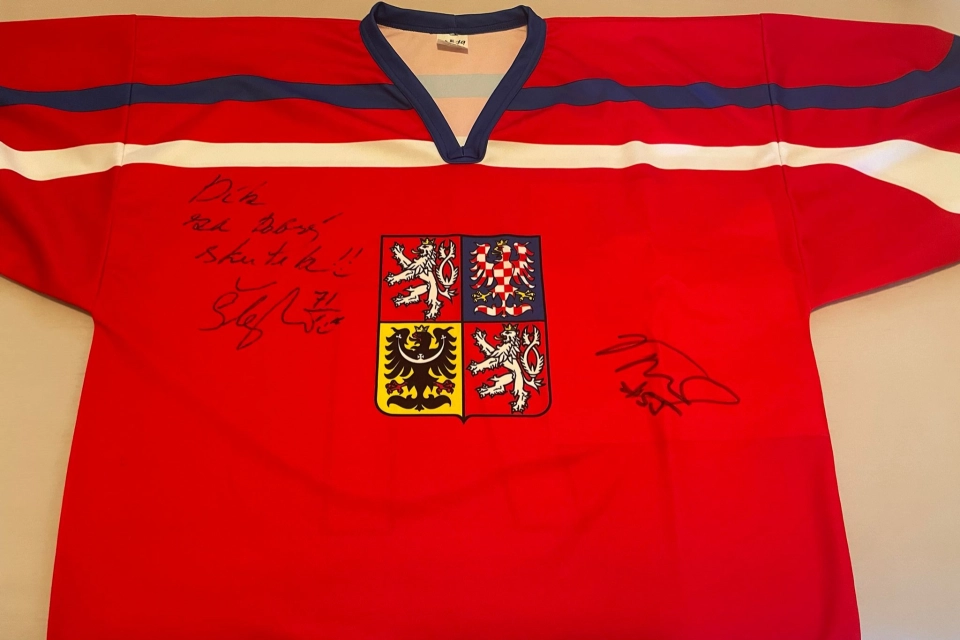 Jde o reprezentační dres Jiřího Šlégra č. 71 z roku 2005, s věnováním a podpisy dalších hokejových legend: Jaroslava Nedvěda, Jaromíra Jágra, Dominika Haška, Martina Ručinského, Ondřeje Beránka, Martina Straky, Milana Hejduka, Martina Nečase, Davida Pastrňáka, Petra Nedvěda a Pavla Zacha. Jiří Šlégr, rodák z Jihlavy, začínal s hokejem v Litvínově. Během své bohaté kariéry získal tři zlaté, jednu stříbrnou a pět bronzových medailí. Díky olympijskému zlatu z Nagana, titulu mistra světa ve Vídni a triumfu ve Stanleyově poháru patří Jiří Šlégr do prestižního Triple Gold Clubu. Jiří Šlégr a jeho přátelé z hokejového prostředí věnovali tento dres na podporu Elenky, dívky s nevyléčitelnou nemocí. Touto vzácnou nemocí trpí na celém světě jen asi 80 lidí. Sbírka, založená společností Noble Group pro Elenku, běží na platformě Donio a je dostupná zde: https://donio.cz/elenka-statecnadivka. V České republice žije mnoho dětí, které v důsledku svého onemocnění vyžadují nepřetržitou péči. Ve většině případů tuto péči zajišťují jejich rodiče. Kvalita života těžce nemocných dětí v domácím prostředí bývá výrazně vyšší než ve specializovaných zdravotnických zařízeních, avšak tato forma péče významně zatěžuje každodenní chod rodiny i život jejích členů. Postupem času může docházet k fyzickému, psychickému i finančnímu vyčerpání celé rodiny. Z tohoto důvodu se organizace Noble Group ve spolupráci s Donio a Společností DUHA, Nadací pro děti postižené mozkovou obrnou, která podporuje rodiny a jejich děti již téměř 35 let, rozhodly tyto rodiny a děti podpořit. Komu v aukci pomůžeme: Elenka se narodila 4. 8. 2008 jako zdravé dítě. Ve věku sedmi měsíců byla očkována hexavakcínou, na kterou její organismus neobvykle zareagoval. Následně se u ní objevilo onemocnění, které je klasifikováno jako nevyléčitelné a vyžaduje dlouhodobou adaptaci. Elenka pravidelně absolvuje logopedii, chirofonetiku, kraniosakrální terapii, rehabilitaci Vojtovou metodou, bioterapii, hipoterapii a další terapeutické intervence. Přínosné jsou pro ni také cvičení v kosmickém oblečku, plavání s delfínem a pohyb pomocí speciálního chodítka Lokomat. Zdravotní pojišťovna však neproplácí tyto alternativní léčebné metody. Po úmrtí Elenčina tatínka v roce 2011 zajišťuje její péči výhradně maminka. Elenka vyžaduje nepřetržitou celodenní pozornost, léčí se na Dětské neurologii v Krči a na Metabolické klinice v Praze. Standardní antiepileptická terapie je neúčinná – frekvence epileptických záchvatů dosahuje až 250 za den. Maminka je proto nucena pečovat o dceru na plný úvazek a není zaměstnána. Cílem této aukce je podpořit Elenku a její maminku ve financování rehabilitačního cvičení v Centru Hájek, které absolvuje čtyřikrát ročně. Dále by prostředky posloužily k pokrytí nákladů na rehabilitaci pomocí robotického zařízení Lokomat v Teplicích, kam dochází rovněž čtyřikrát ročně, a na závěr také na delfinoterapii, kterou podstupuje jednou ročně. Tyto aktivity přispívají k významnému mentálnímu rozvoji Elenky a zároveň výrazně snižují četnost závažných epileptických záchvatů. Přestože Elenka nebude moci vést zcela běžný život, společně jí můžeme poskytnout maximální podporu pro zlepšení její kvality života.