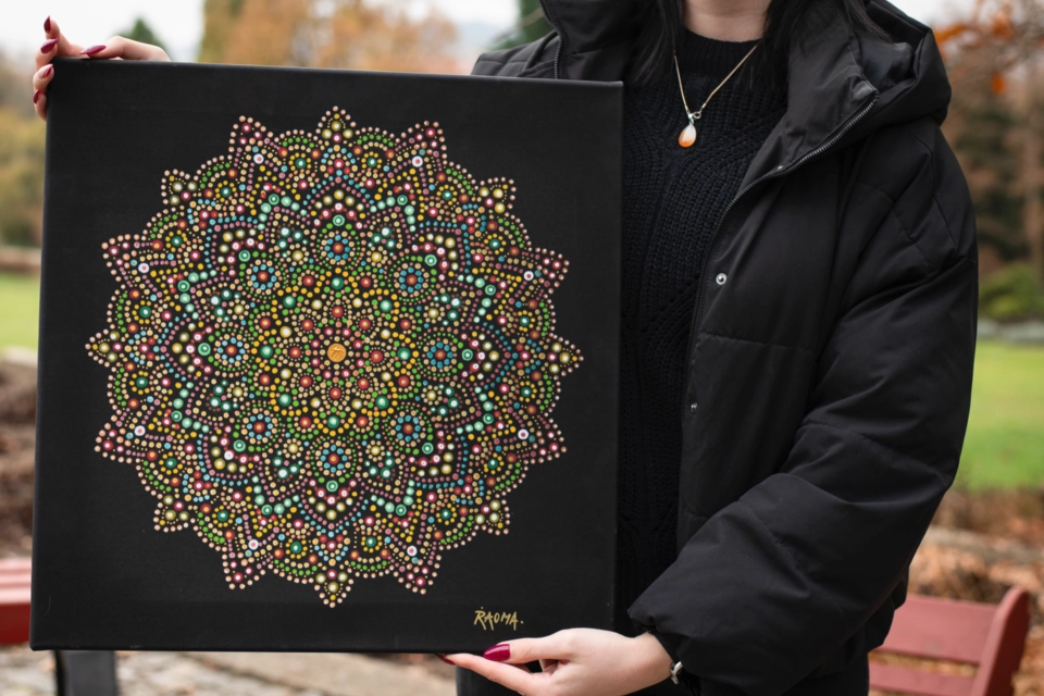 Vyzdobte si své oblíbené místo tímto nádherným obrazem od alternativní terapeutky a mandalířky “Raomy”. Obraz navozuje pocit klidu a relaxace a rozzáří každou místnost. Vzadu si nezapomeňte přečíst osobní vzkaz🌸🎨💌. Rozměry: 50x50cm Doprava: - možnost osobního předání 4.12. na Dobrotrhu od 10 do 16 hodin před budovou Q Mendelovy univerzity v Brně - přes zásilkovnu (poštovné 50 až 140 Kč) Jsme studenti Mendelovy univerzity a představujeme vám aukci, jejímž cílem je podpořit ty, kteří to nejvíce potřebují. Tento rok bychom rádi pomohli: - Melisce, dvouleté holčičce, která bojuje s neurologickými problémy - Pětileté Ariance, která se potýká s vážnými genetickými poruchami - Útulku Čtyřlístek pro hafany snažící se obnovit svůj domov pro opuštěné psy po ničivých povodních Výtěžek z Dobrotrhu půjde rovným dílem pro tyto podporované subjekty. Více informací naleznete na facebookových stránkách Dobrotrhu: https://www.facebook.com/dobrotrhmendelu/?locale=cs_CZ