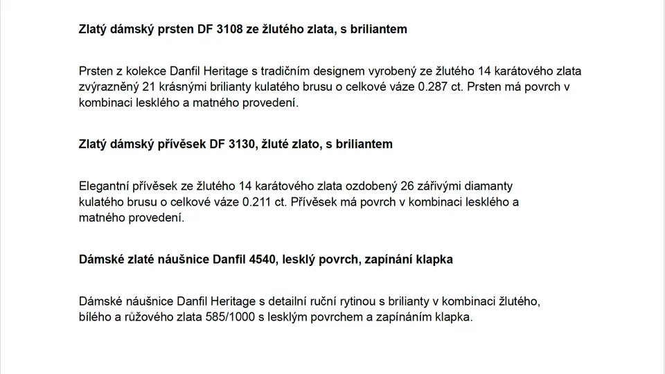 Kolekce Heritage nejsou jenom šperky, jsou to kusy historie, připomínky času, kdy elegance a dovednost řemeslníka měly své vlastní místo. Víme, že skutečná hodnota těchto šperků spočívá nejen v jejich kráse, ale také v síle, jakou mohou nést, když se stanou nástrojem pomoci druhým. V Danfilu usilujeme o zachování dědictví naší minulosti, ale nezapomínáme na ty, kteří nám toto dědictví přinesli. Starší generace s sebou nesou nesmírnou moudrost, zkušenosti a příběhy. Jejich životní cesta byla často plná výzev, ale také radosti a lásky. Jsou to naši rodiče, prarodiče a lidé, kteří nám ukázali cestu v tomto světě. S tímto na mysli jsme se rozhodli, že naše šperky z kolekce Heritage budou mít dvojí účel. První je samozřejmě zachovat a sdílet krásu a tradici našeho umění šperkařství. Druhý je mnohem hlubší a dojemnější - pomoci těm, kteří to potřebují. Srdce a duše naší šperkařské firmy jsou naplněny vděčností vůči těm, kteří se rozhodnou této aukce zúčastnit a podpořit tak tento krásný projekt. Nadace Krása pomoci nám umožnila spojit krásu a solidaritu do jednoho aktu lásky a my vám za to děkujeme. Výtěžek z aukce podpoří hlavní misi Krásy pomoci – předcházet sociální izolaci a osamělosti seniorů a podporovat mezigenerační přátelství. No a teď to mimořádné – tyhle krásné šperky budeme jejich novému majiteli předávat na oslavě Mezinárodního dne seniorů 2. října v Praze, kde bude možné se potkat nejen se skvělým Krásným týmem, ale i klienty nadace.