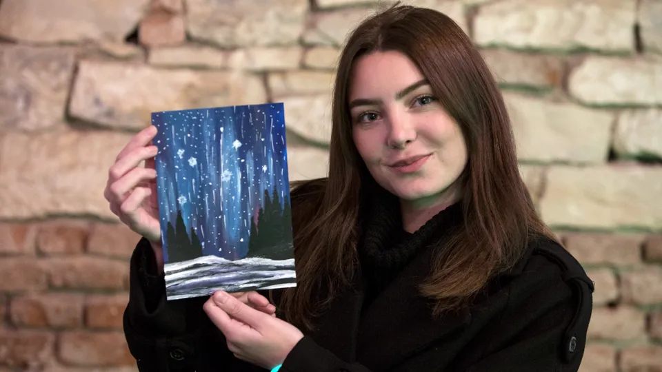 Vydražte tuto unikátní pohlednici s názvem Polární záře, kterou vytvořila Terez Vebrová na tvořivém setkání DobroDej pořádaném Dobrobotem a ArtMoment. Pohlednici o rozměrech 10x15 cm můžete nyní u příležitosti #givingtuesday vydražit a podpořit tak Terez oblíbenou neziskovou organizaci - Maminy s rakovinou.