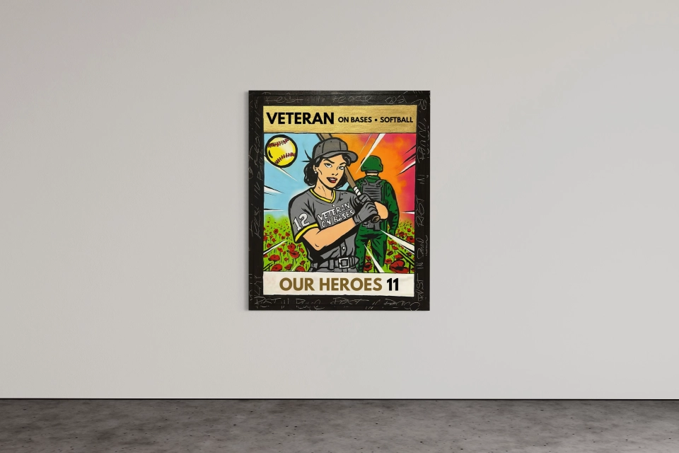 Pop-artový umělec Josef Rataj vytvořil originální obraz inspirovaný legendárními sběratelskými baseballovými kartičkami. Dílo tematicky navazuje na spolupráci s 13. dělostřeleckým plukem Armády ČR, pro který Rataj navrhl dresy nového softballového týmu. Jeho vizuální styl vzdává hold válečným veteránům a padlým vojákům, jejichž odvaha a služba jsou hlavním motivem i této malby. Obraz propojuje současnou Ratajovu pop-artovou tvorbu s prvky armádní identity. Je poctou těm, kteří sloužili, i těm, kteří svým sportovním úsilím pomáhají uchovat jejich odkaz. Tento obraz připomíná, že statečnost a odhodlání mají mnoho podob. Video si můžete pustit zde https://youtu.be/mOmrLW8W8fY Název obrazu: Veteran on Bases Autor: Josef Rataj Rozměr: 120 x 100 cm Technika: akryl na plátně Rok vzniku: 2025