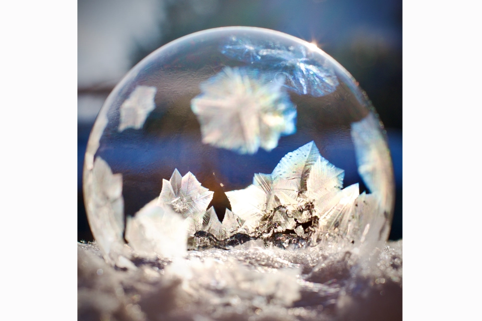 Únor 2021, doba kovidová, distanční výuka, již dlouhé měsíce na sebe s mými žáky koukáme jen přes obrazovky našich počítačů. Chtělo by to nějaký projekt, abychom mohli alespoň na dálku sdílet trochu radosti. Naštěstí přichází nejstudenější týden roku s teplotami kolem 14 stupňů pod nulou, o zadání domácího úkolu je rozhodnuto: “Zkus vyfotit zmrzlou bublinu. Z fotek zamrzlé krásy sestavíme společnou fotogalerii. Potřebuješ jen vodu, jar a trochu cukru. Nezapomeň, že fotku můžeš ulovit jen časně ráno, jen tehdy bude ta pravá zima. K focení pozvi klidně celou rodinu, víc rukou se ti bude určitě hodit.” A strhl se týdenní bublinový maraton. Galerie se začala plnit zamrzlými skvosty. Fotilo se mobilem i zrcadlovkou. Ti, kteří ráno zaspali, fotili nakonec večer za svitu lamp. Někteří se pustili i do videa. Někteří dodali sérii fotek dokumentujících, jak postupně bublina zamrzá. A to je i případ této fotky, kterou vyfotil zrcadlovkou jeden primán se svým tatínkem. Formát: 30 x 30 cm Vydraženou fotografii vám necháme profesionálně vytisknout. Na dalších podrobnostech, včetně možnosti zarámování, se s vámi domluvíme po uzavření aukce. Vydraženou fotografii pak obdržíte nejpozději do konce ledna 2025. Tato fotografie je součástí kolekce "Když se umění potká s fyzikou". Fotografie zmrzlých bublin, barevných krystalů, optických iluzí, chaotického pohybu dvojkyvadla a nebo malování světlem do tmy, to je jen výběr toho, co vzniká během hodin fyziky a školních projektů. Fotografie v této dražbě pocházejí z tvorby studentek a studentů Církevního gymnázia Plzeň. Učitelé této školy, i díky zapojení do Elixíru do škol, prosazují ve své práci přístup “fyzika hlavou a rukama”. Elixír je tu pro pedagogy od roku 2013 a to, že se rozšiřuje do všech koutů ČR, potvrzuje, že vzájemné sdílení zkušeností a radosti z pokusování, které v regionech nabízí, funguje. Mnozí z učitelů, kteří k nám patří, jsou s námi už od zrodu a mají na kontě neuvěřitelných 120 absolvovaných setkání - dobrovolně a ve svém volném čase. Výtěžek z aukce zůstane u nás v Elixíru a umožní, aby se do sítě mohli přidat další učitelé a učitelky. Každé dítě si zaslouží pedagoga se spoustou nápadů, který ho dokáže nadšeně provázet pestrou krajinou přírodních věd.